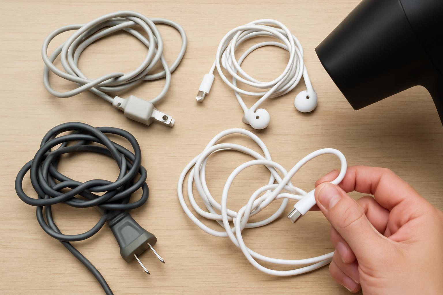 本記事は、充電器のUSB-CやLightning、イヤホン、延長コード・電源コードまで、家庭用・オフィスで日常的に使う配線の「ねじれ」を30秒でリセットする即効アイディアと、二度とねじれにくくする予防策・収納術をまとめて解説します。